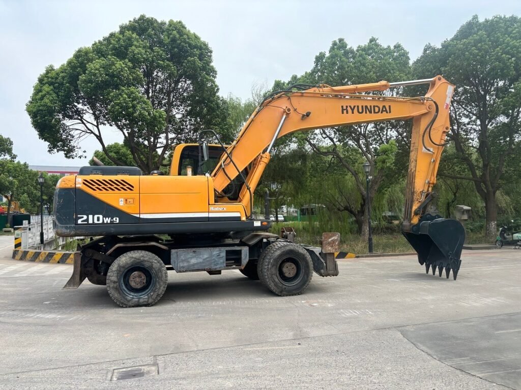 The Hyundai 210W-9 wheeled excavator is widely used in municipal construction, road maintenance, pipeline installation, city infrastructure development, landscaping, and utility engineering. As a popular used wheel excavator and second-hand rubber tire excavator, it is an excellent choice for contractors and buyers looking for a reliable, mobile, and cost-effective wheeled excavator for sale.